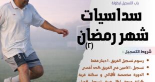 سداسيات شهر رمضان شروط التسجيل: رسوم تسجيل الفريق 10 دينار فقط تسجيل 10 ارزرين في الفريق الكرواني الدورة التدريبية لتهرين وسكنة قائدة الفريق الكرناني، ويحق لكل فريق تسجيل كرانات فقط من خارج البلد (إذا كان ذلك ممكنًا) . تقام في ملاعب لوسيل تاريخ 26 و 27 فبراير 2026