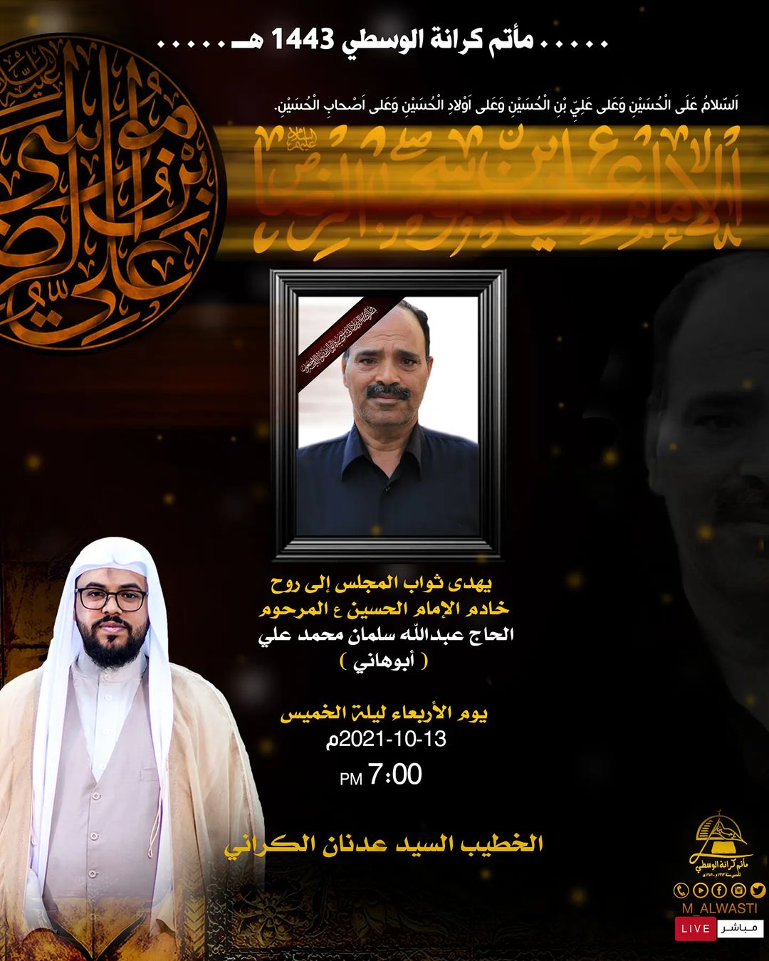 المجلس إلى روح خادم الإمام الحسين ع المرحوم الحاج عبدالله سلمان محمد علي ( أبوهاني )