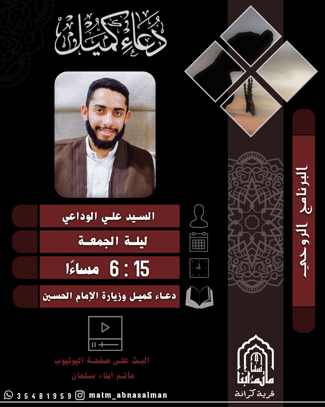 القارئ السيد علي الوداعي ليلـة الجمعـة 15 : 6 مساءا دعـاء كميـل وزيارة الإمام الحسين
