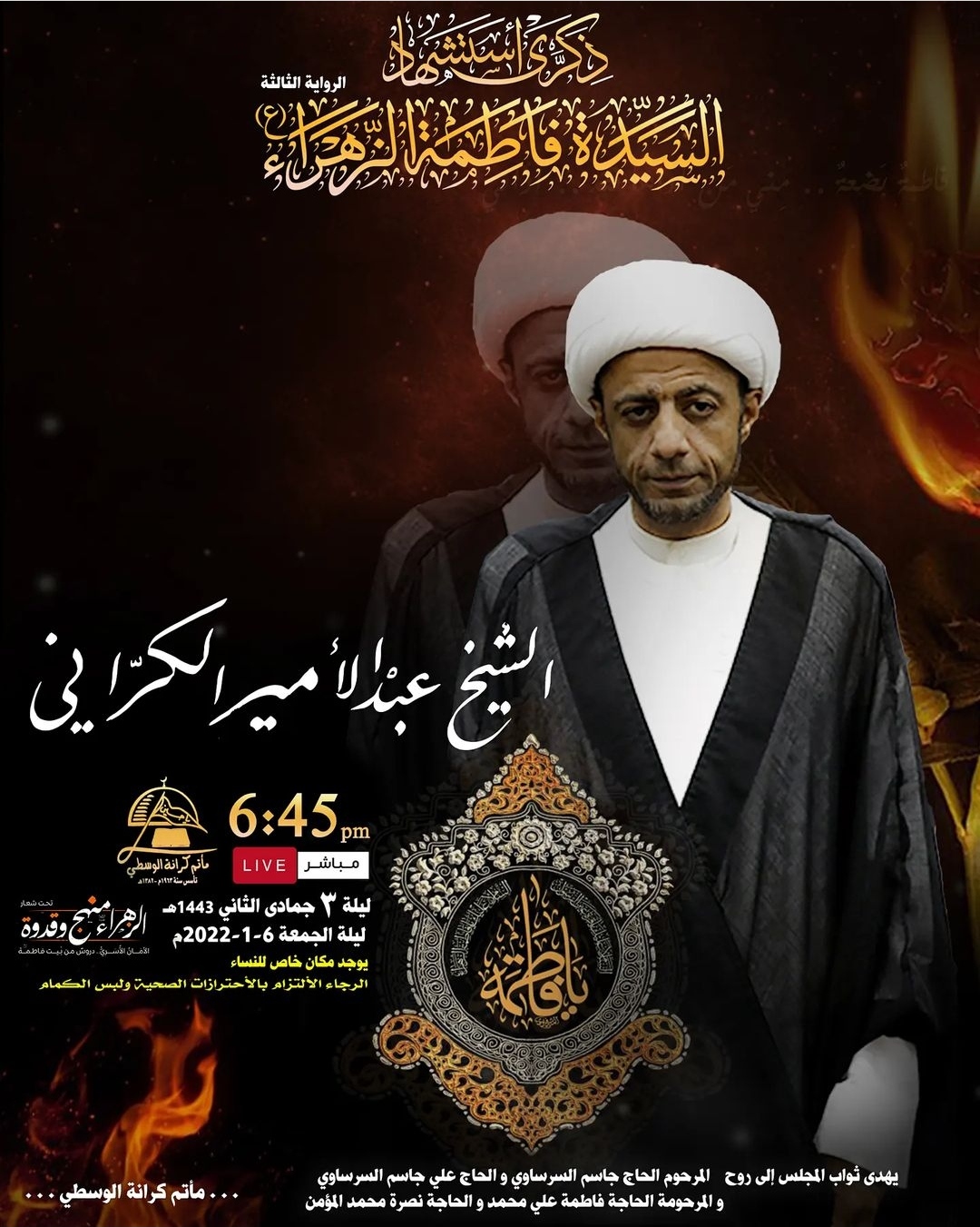 يهدى ثواب المجلس إلى روح المرحوم الحاج جاسم السرساوي و الحاج علي جاسم السرساوي و المرحومة الحاجة فاطمة علي محمد و الحاجة نصرة محمد المؤمن