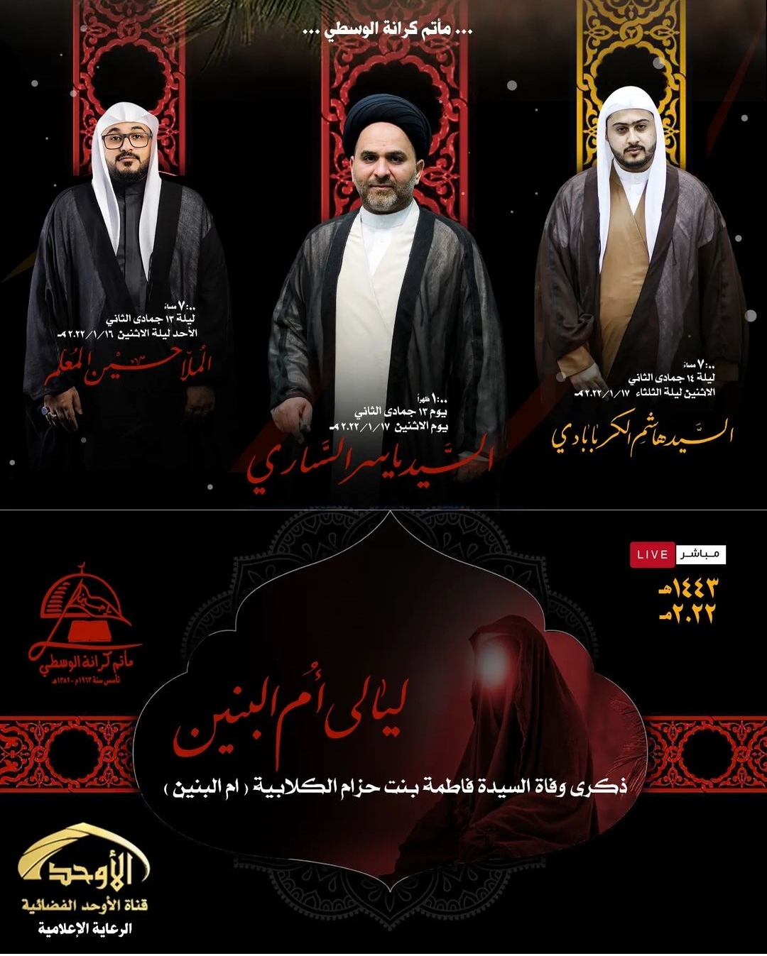 ۷:۰۰ سال ليلة 13 جمادي الثاني الأحد ليلة الاثنين ۱/۱٦/ ۲۰۲۲ »
