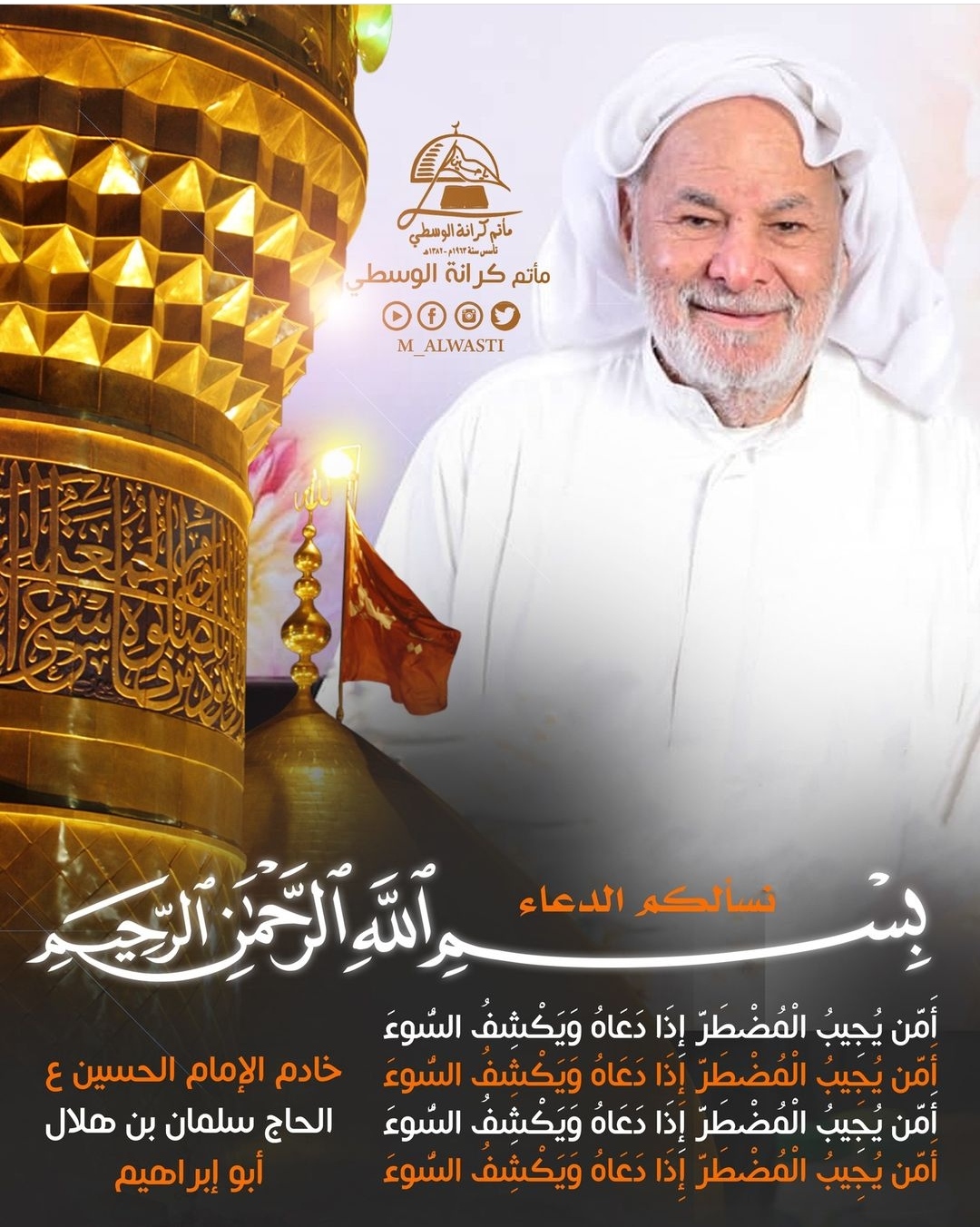 ياربي اكشف الضر والبلوه عن الحاج سلمان بن هلال بحق فاطمة وابيها وبعلها وبنيها والسر المستودع فيها