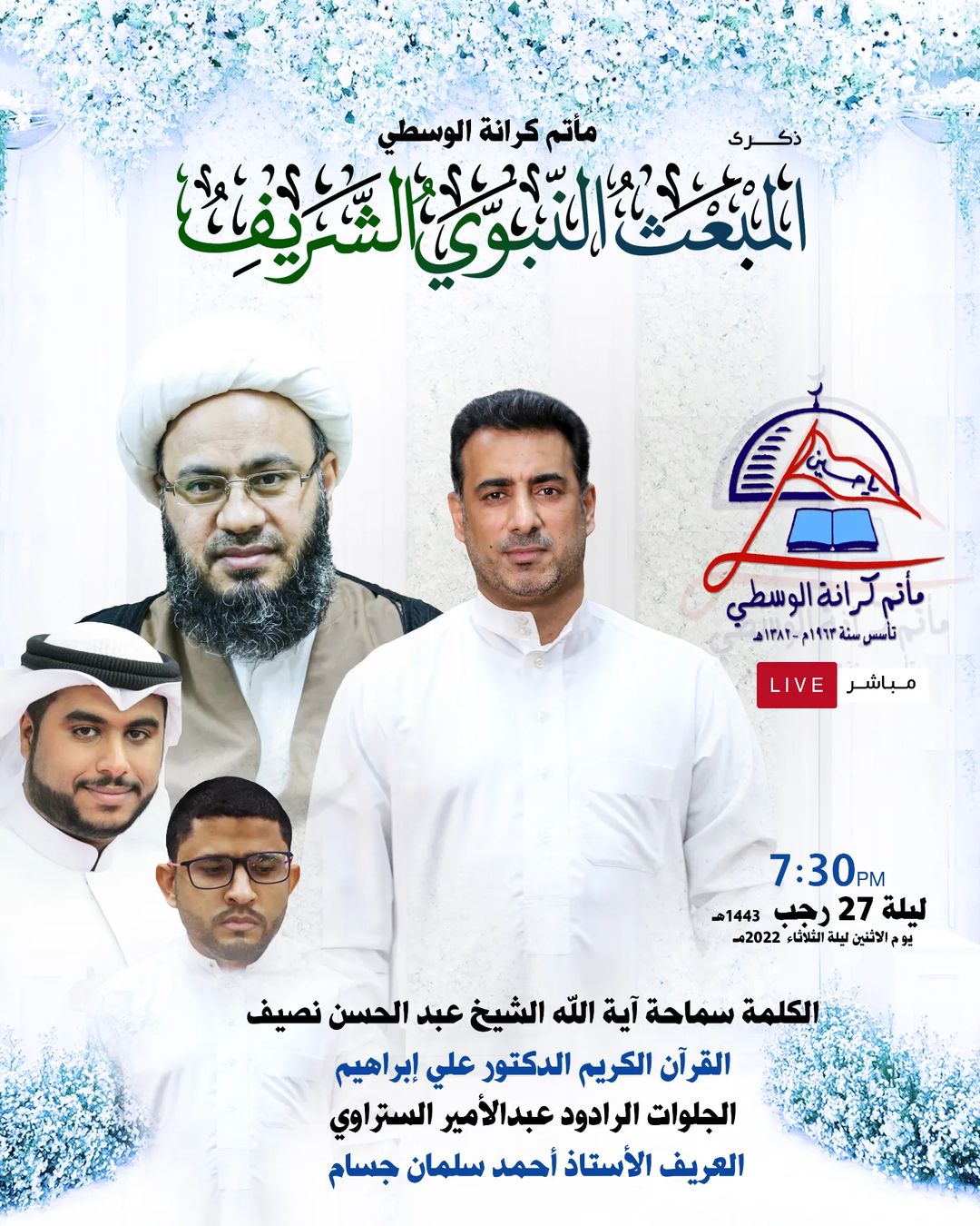 7:30PM ليلة 27 رجب 1443هـ