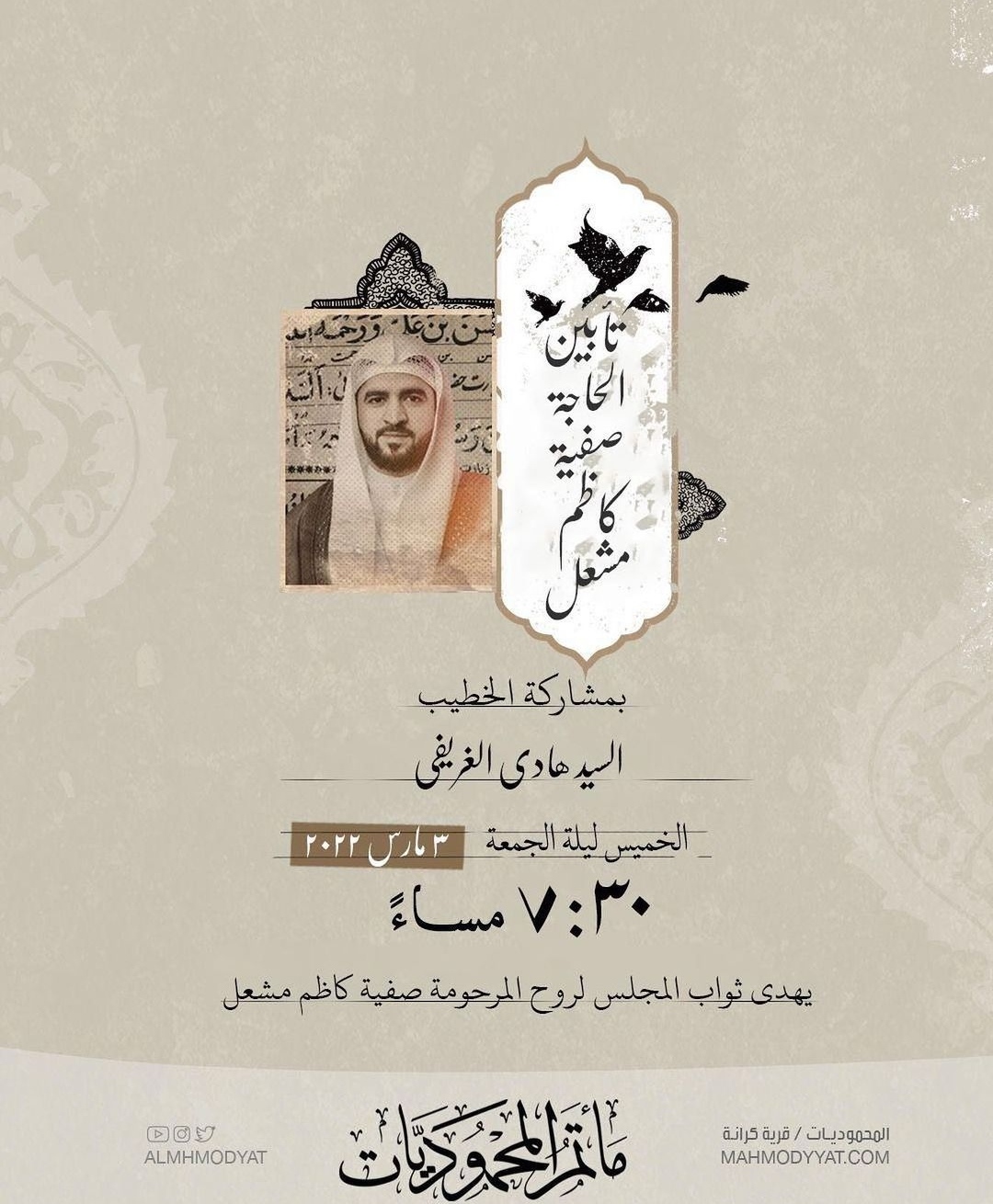 يهدي ثواب المجلس لروح المرحومة صفية كاظم مشعل