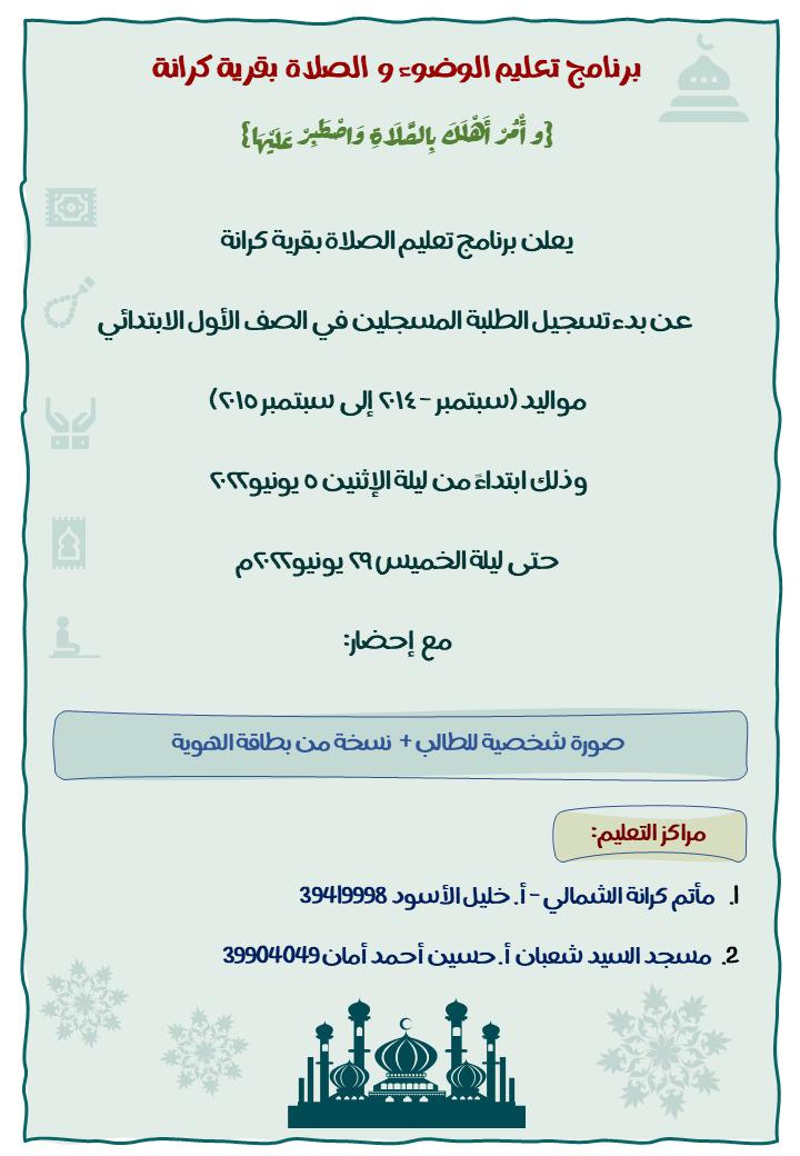 يعلن برنامج تعليم الصلاة بقرية كرانة