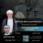 المكان : مأتم المحموديات قرية كرانة اليوم : الجمعة 30 ديسمبر 2022 الوقت : الساعة 06:20 صباحا