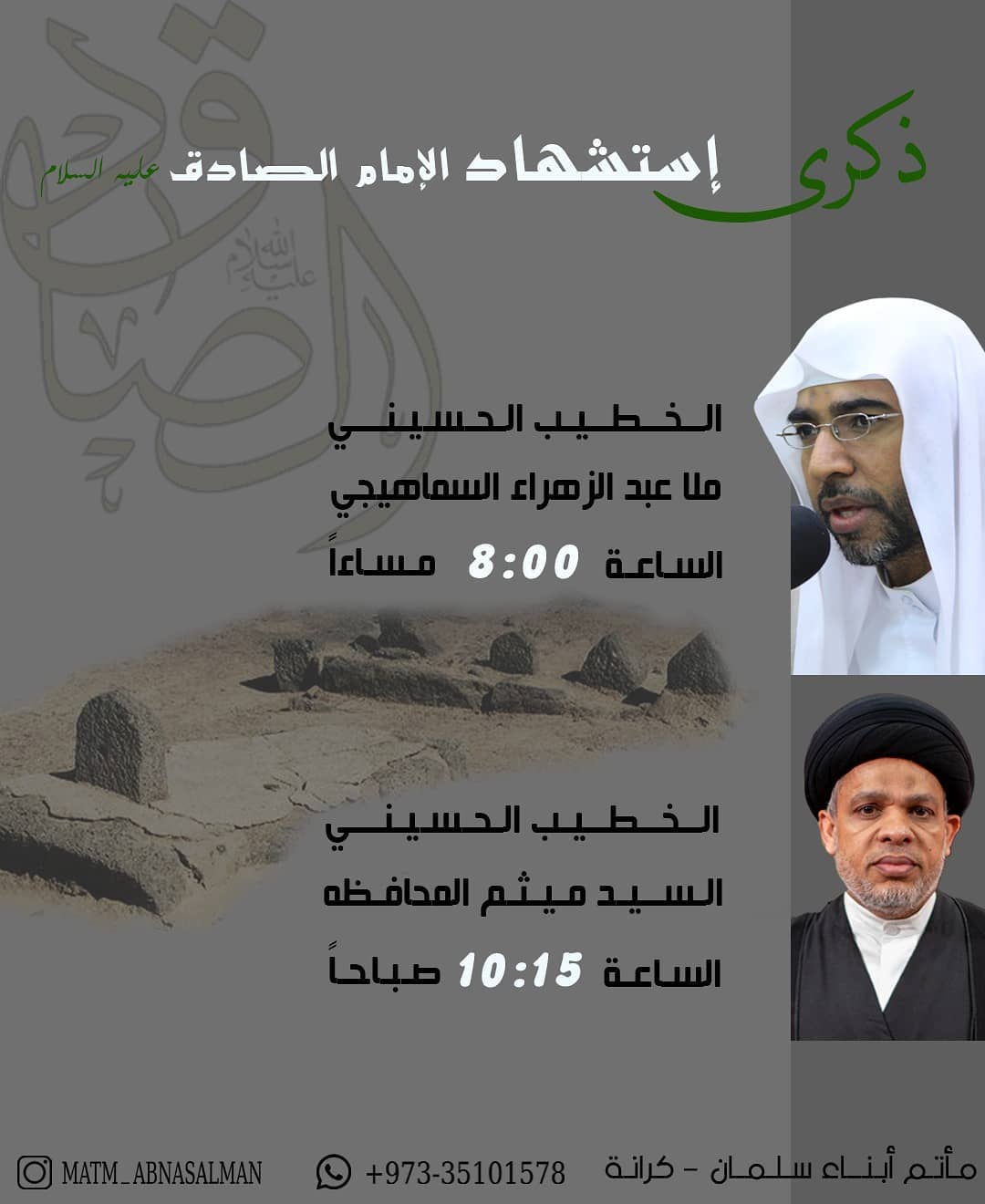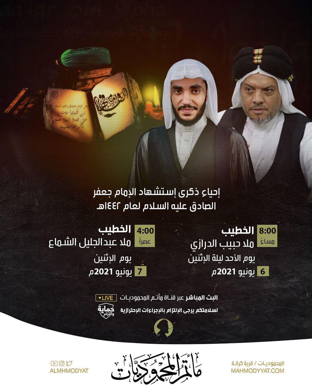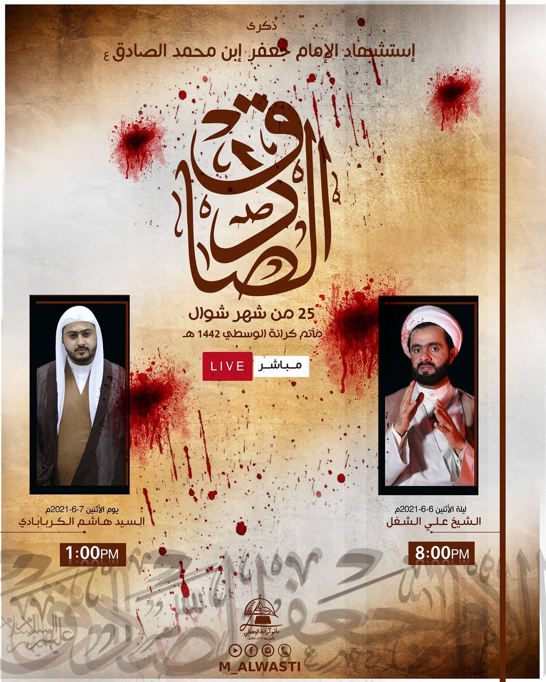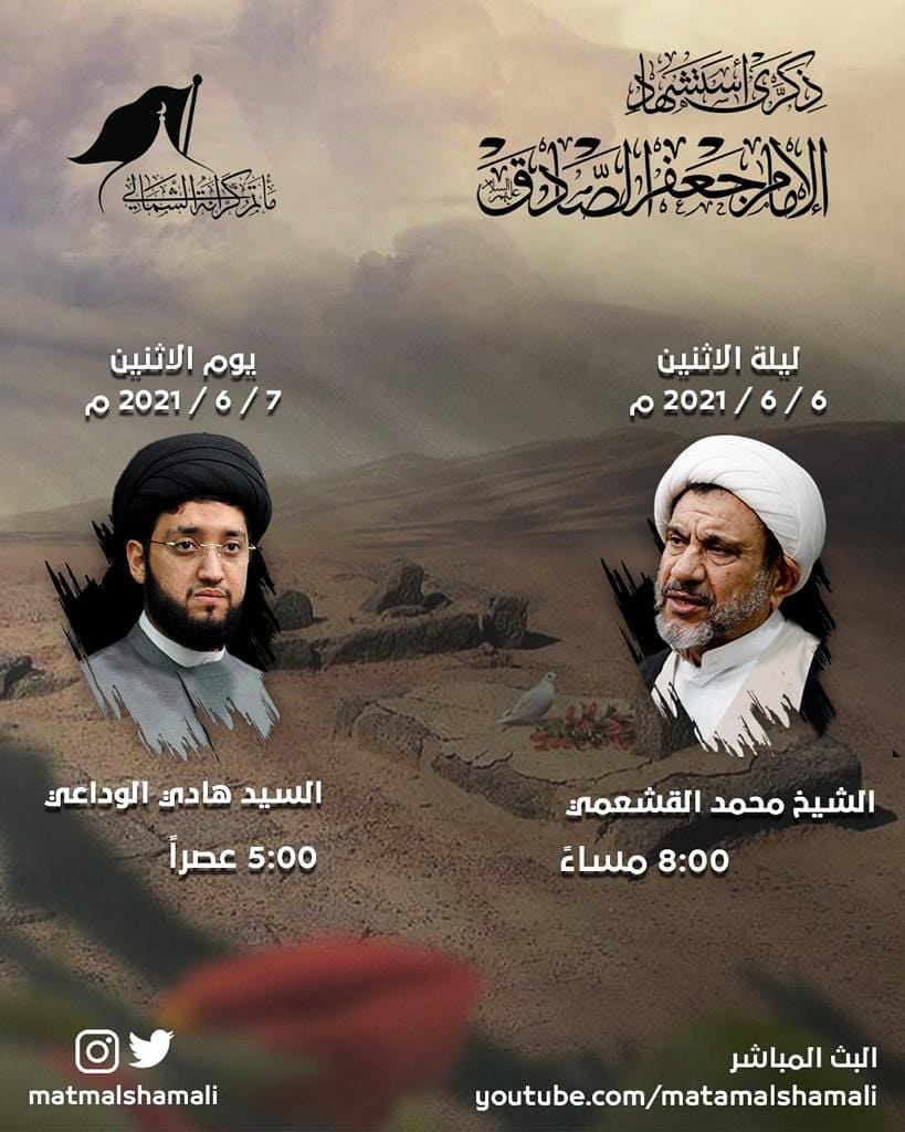 ذكرى إستشهاد الإمام الصادق عليه السلام ٢٥شوال ١٤٤٢هجرية ليلا ملا عبد الزهراء السماهيجي الساعة ٨ صباح الوفاة السيد ميثم المحافظة…
