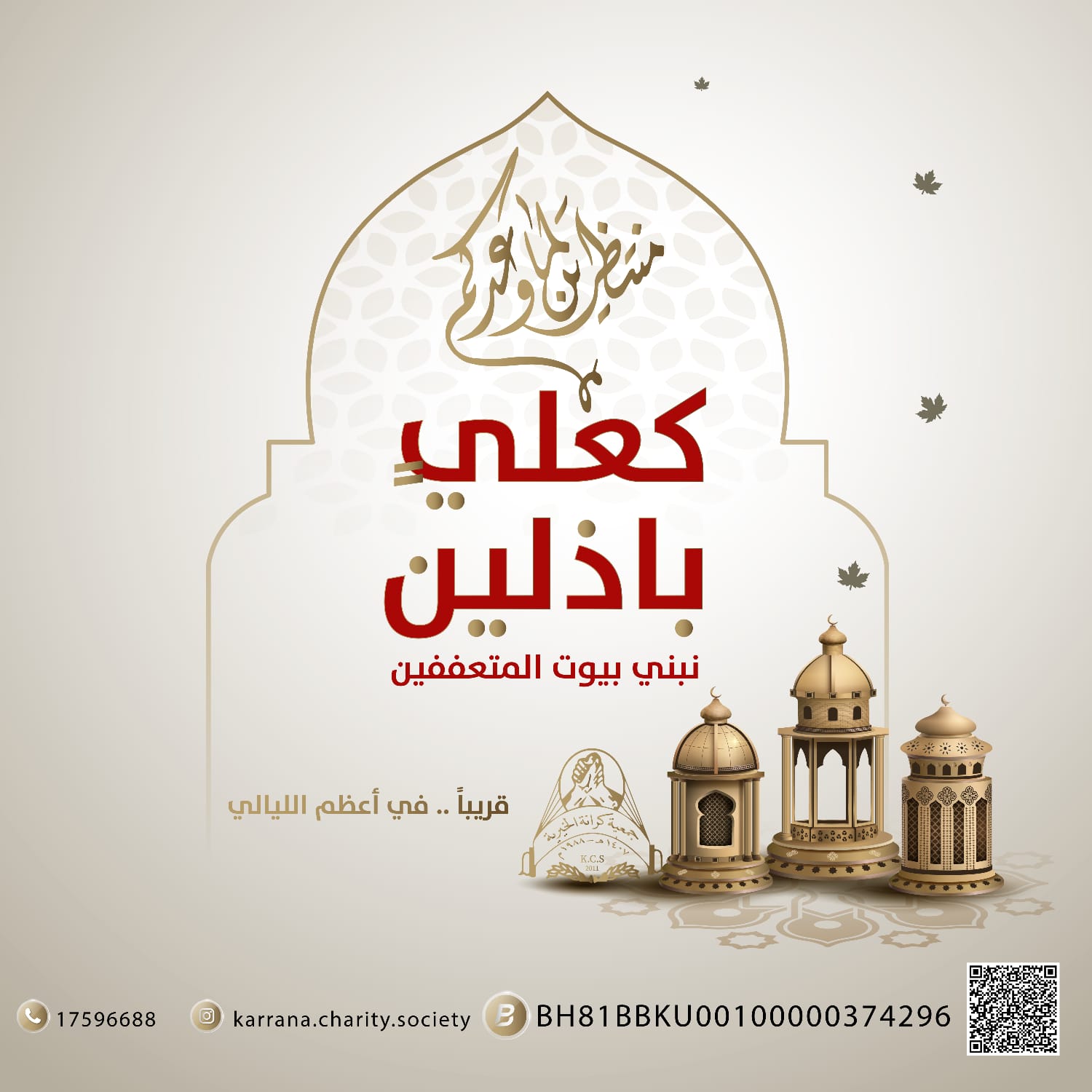 *كَعَلِيٍّ بَاْذِلِيْنَ* *نَبْنِيْ* *بُيُوْتَ* *اَلْمُتَعَفِفِيْنَ* قريبًا في *أعظم الليالي* جمعية *كرانة* الخيرية الاجتماعية