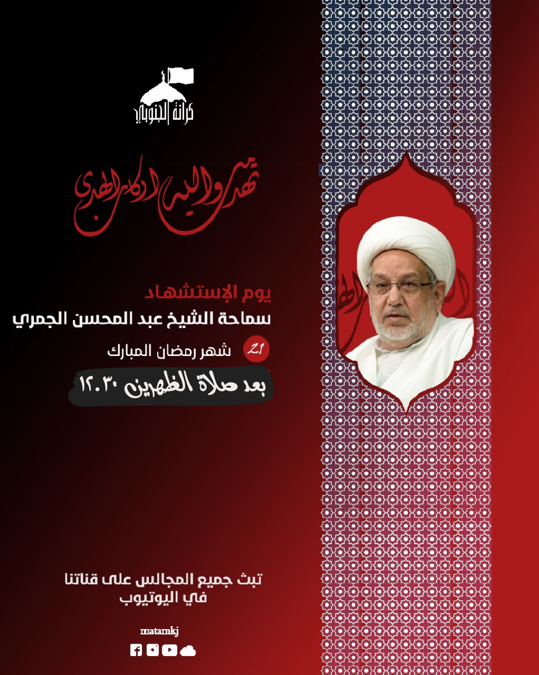 تهدمت والله اركان الهدى. اعلان شيخ عبد المحسن يوم وفاة الامام ع ( غدا) بعد صلاة الظهرين 12 ونصف…