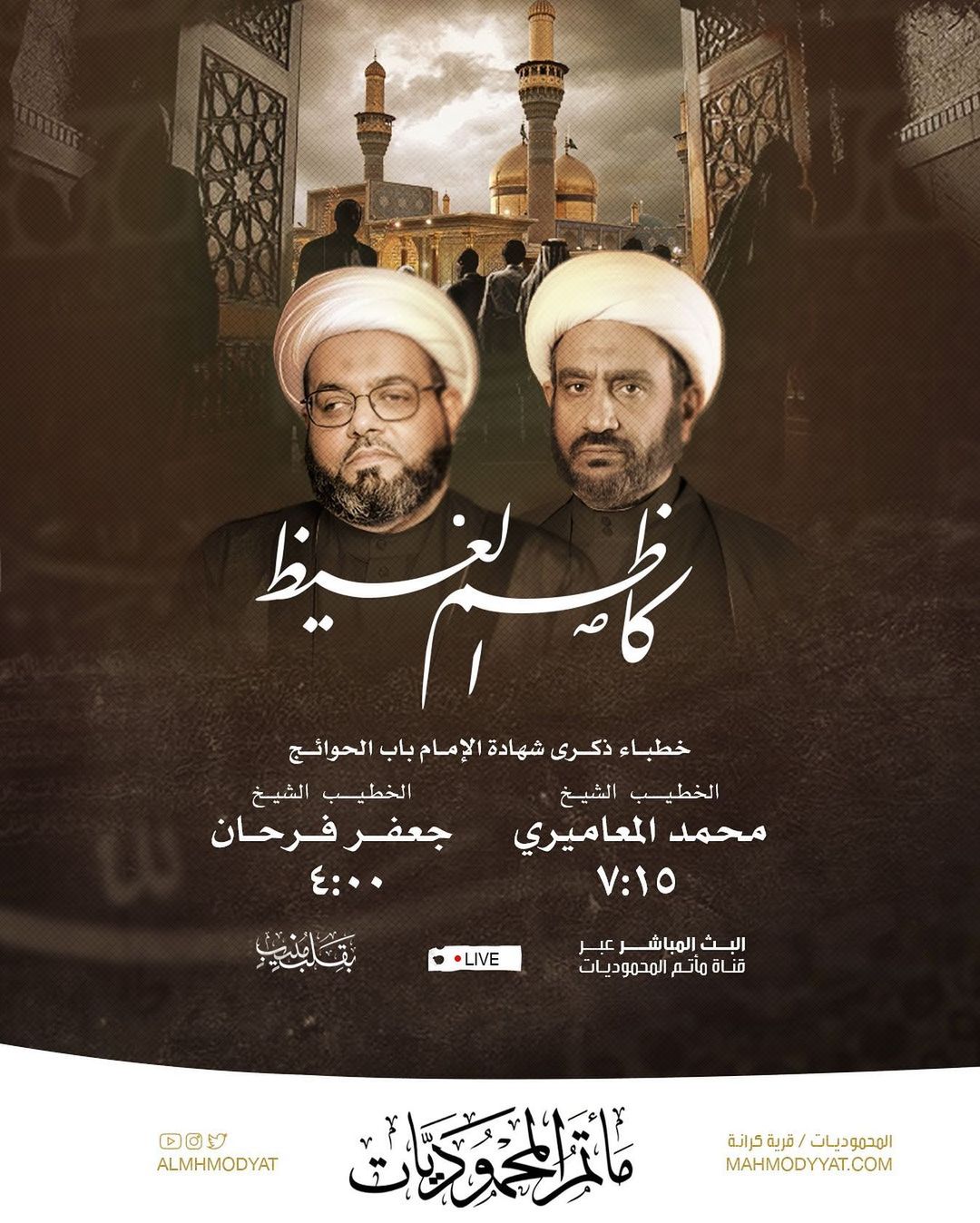 خطبـاء ذكـرى شهادة الإمام باب الحوائج الخطيـب الشيـخ الخطيب الشيخ محمد المعاميري جعفـر فـرحـان ٤:٠٠ البث المباشـر عبـر قناة ماتـم المحموديات المحموديات / قرية كرانةمواصلة القراءة
