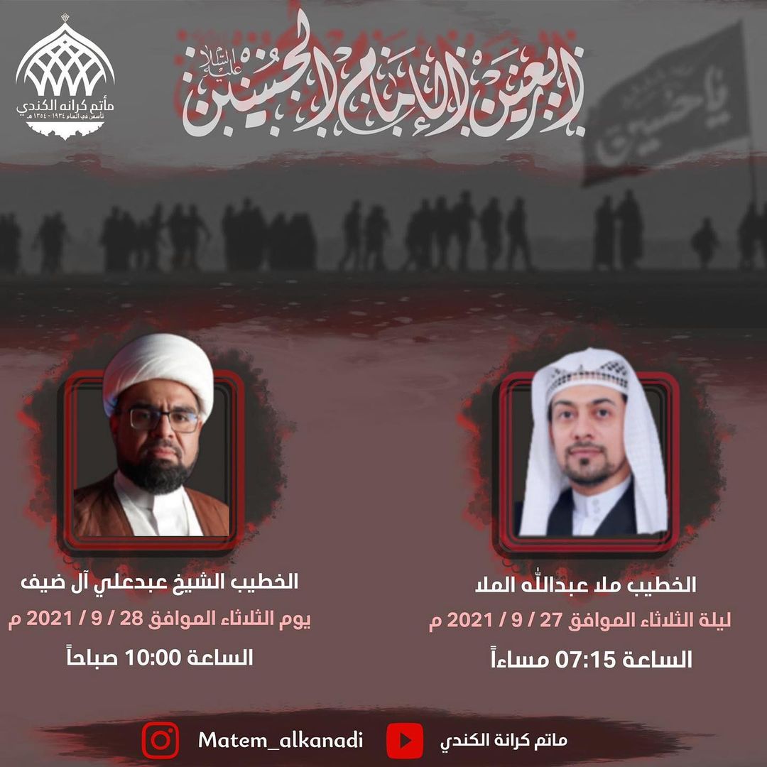 مأتم_كرانة_الكندي ليلة 20 صفر 1443 الخطيب الشيخ عبدعلي آل ضيف الخطيب ملا عبدالله الملامواصلة القراءة
