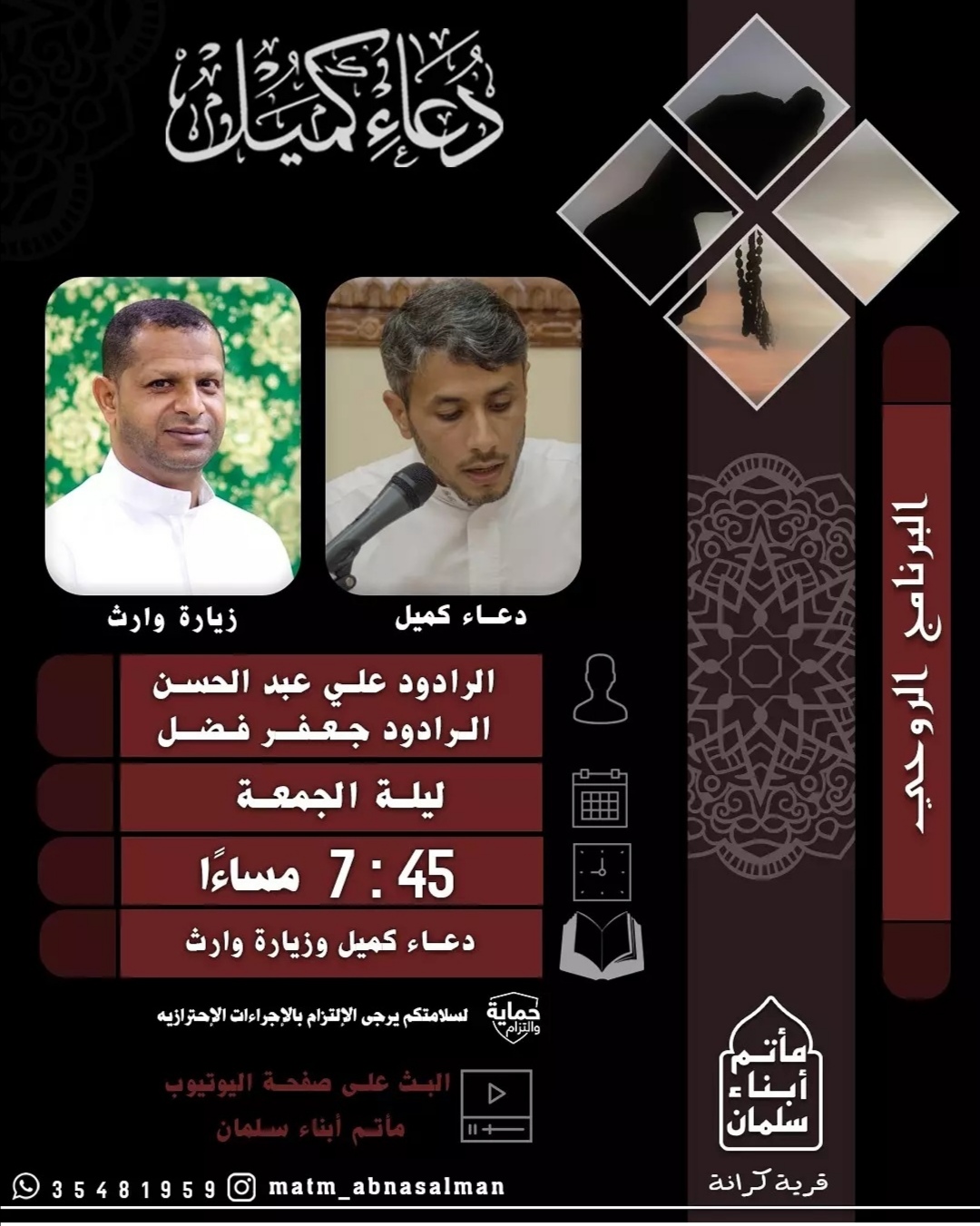 دعاء كميل القارئ علي عبد الحسن وزيارة وارث القارئ جعفر احمد