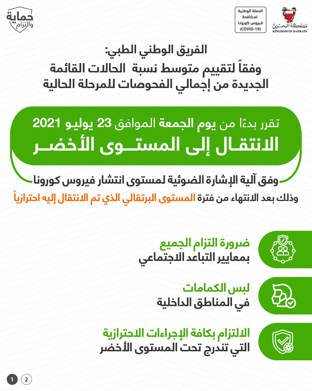 أعلن الفريق الوطني الطبي للتصدي لفيروس كورونا (كوفيد-19)، ووفقًا لتقييم متوسط نسبة الحالات القائمة الجديدة من إجمالي الفحوصات للمرحلة الحالية،…