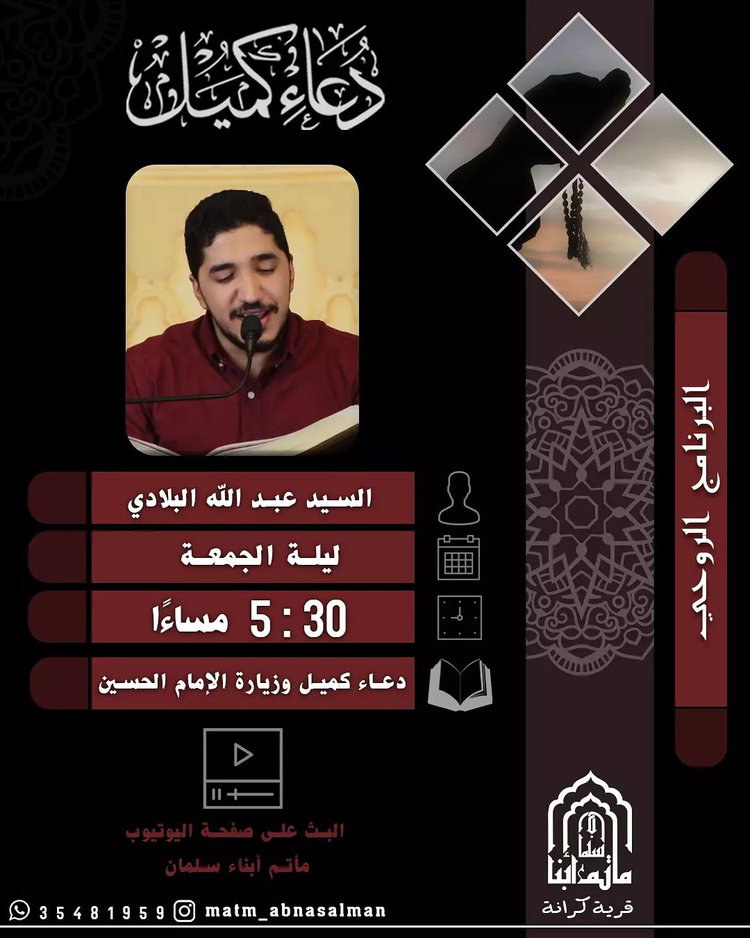 السيد عبـد الله البلادي ليلـة الجمعـة 30 : 5 مساء دعـاء كميـل وزيارة الإمام الحسين ماتم ابناء سلمان