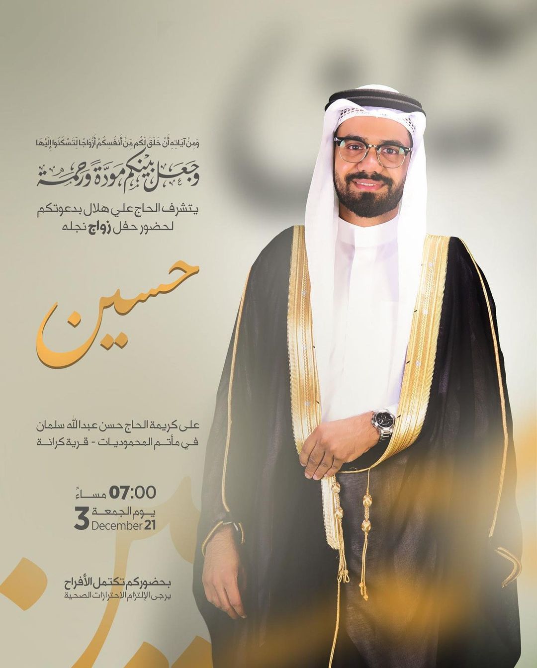 يتشرف الحاج علي هلال بدعوتكم لحضور حفل زواج نجله على كريمة الحاج حسن عبدالله سلمان فـي مـأتـم المحموديـات – قـريـة…